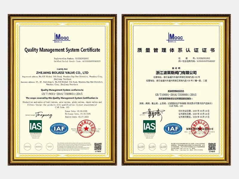 Zhejiang Bolaisi Valve Co., Ltd. bietet sowohl Standard- als auch kundenspezifische Produkte an. Wir können verschiedene Produkte nach Kundenzeichnungen oder Mustern herstellen. Wir werden in der Anfangsphase ausführlich mit Ihnen kommunizieren. Nach der Produktbestätigung stellen wir dem Kunden vor der Produktion ein Muster zur Verfügung. Erst nachdem der Kunde das Muster genehmigt hat, beginnen wir mit der Produktion. Während des Herstellungsprozesses kontrollieren wir die Produktqualität streng und alle Qualitätsprobleme werden umgehend behoben. Die Produktqualität und Effizienz unserer Fabrik gehören durchweg zu den Besten der Branche.